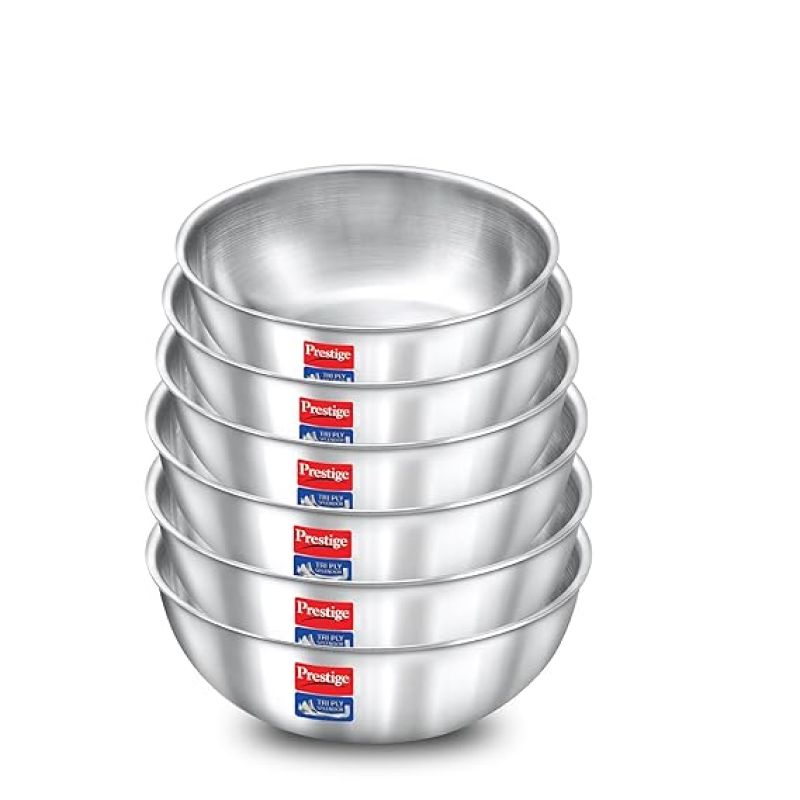 Prestige 6-Piece Tri-Ply Stainless Steel Tasla Kadai Set with Free Pakkad|Gas & Induction Compatible