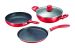 About this item Material: aluminum color: red finish: non-stick Item shape: round item diameter: kadai: 24 cm, tawa: 28 cm, fry pan: 20 cm Kadai (Capacity): 1.5l Package contents: 1 kadai with lid, 1 tawa and 1 fry pan