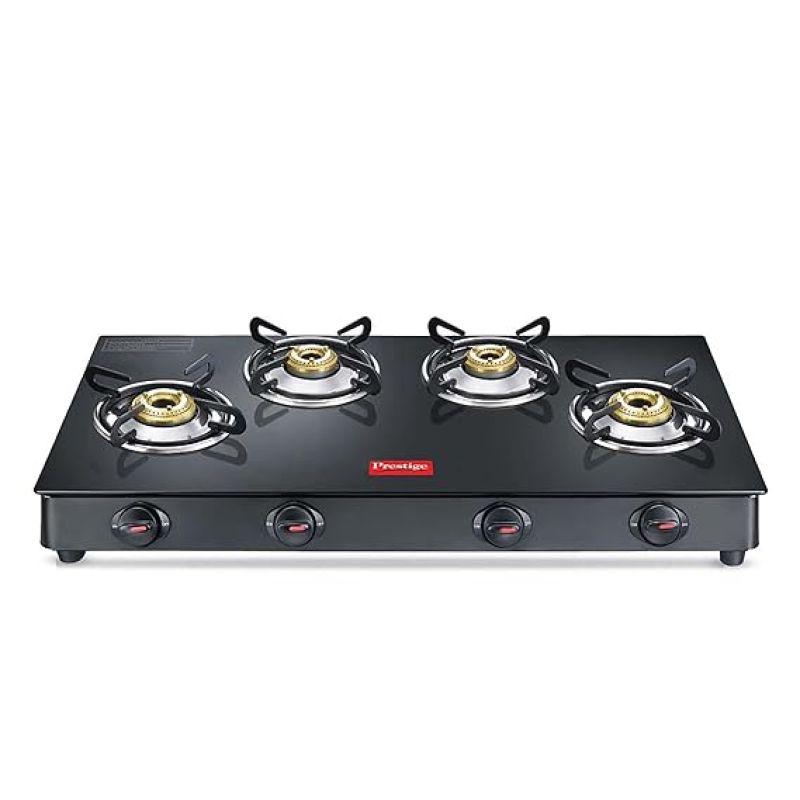 Prestige Magic plus Toughened Glass-Top(Long)4 Brass Burner LPG Gas Stove