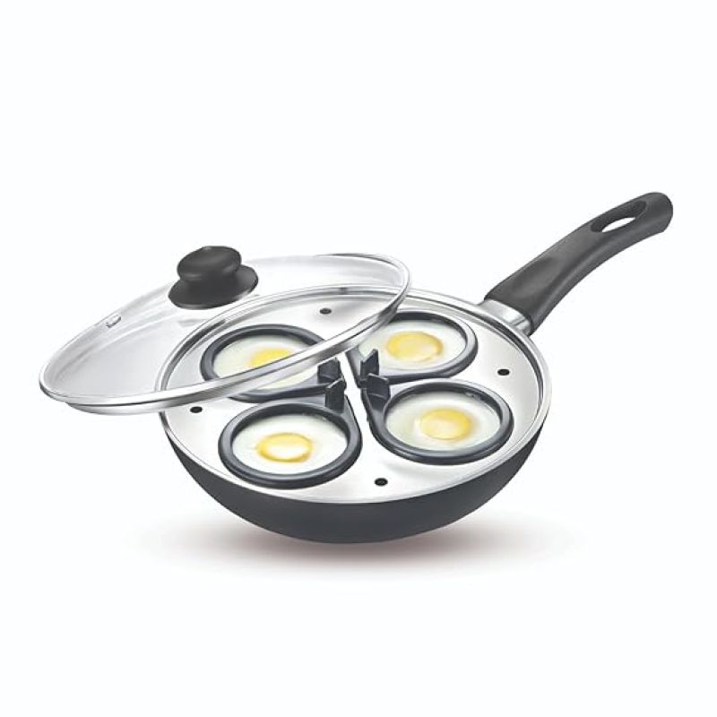 About this item Durable Granite Finish Coating Large Egg Poaching Cup High-Quality Stainless-Steel Steamer Superior Non Stick Surface Induction Base Color-Black and Silver Size-20 cm PFOA Free Made in India