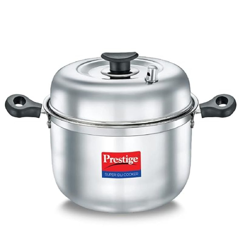 About this item Idly Cooker - 6 Plates ( 5 Regular plates + 1 Mini Idly Plate); GAS AND INDUCTION COMPATIBLE: Make perfect idlis irrespective of what you're cooking on as this cooker is compatible with both induction and gas STEAM VENT: Designed specially for making idlis, this vent allows for a steady expulsion of excess steam, giving you the fluffiest Idli. 304 STAINLESS STEEL IDLI PLATE: The high-quality 304 stainless-steel plates are designed to give you perfectly shaped idlis that come off easily after cooking. PERMA COOL HANDLE: The handles are made with materials that have heat-resistant properties. As a result, handing cooker is easy and, of course safe. Color Name: Silver; Included Components: Instruction Manual