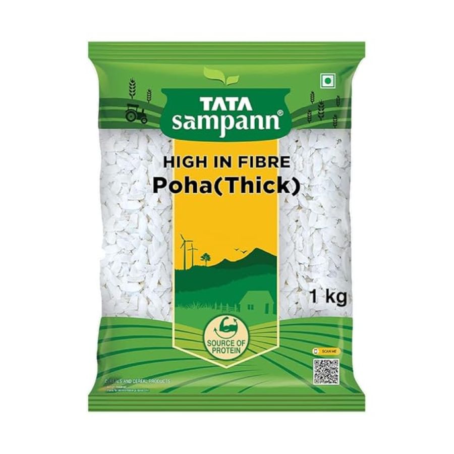 About this item Nutritious Snack: Enjoy deliciously wholesome and healthy snack with Tata Sampann Thick Poha High in Fibre: Dietary Fibre promotes digestive health Source of Protein: Protein is generally known as an important building block for the body Best Sourced Paddy: Uses best-sourced paddy to bring you a great-tasting and nutritious snack Anytime Enjoyment: Can be enjoyed at any time of the day Poha, Breakfast Poha, Tata Sampann Thick Poha, Poha Breakfast, White Poha, White Thick Poha